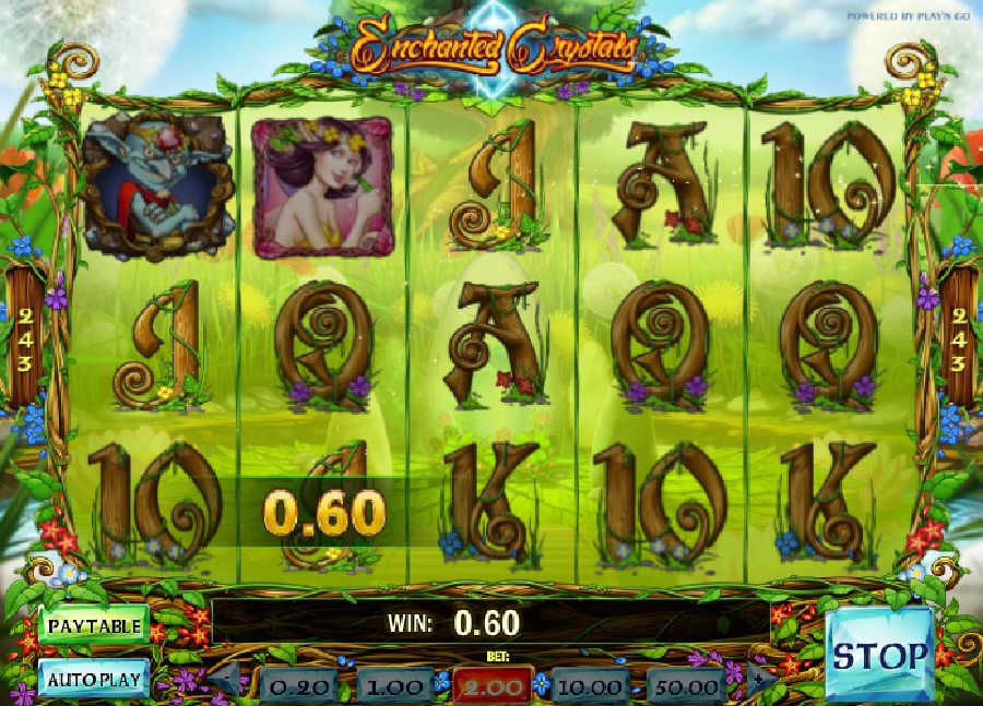 Enchanted Crystals har 5-hjul och 243 vinstvägar. Enchated Crystals inkluderar en wild-symbol (kristallen), en bonus scatter-symbol (trollkungen) och en free spins-symbol (fjärilen). Wild-symbolen ersätter vilken av de andra hjulsymbolerna som helst (utom trollkungen och fjärilen) och används för att skapa vinnande kombinationer. En wild-symbol som förekommer på hjul 2, 3 eller 4 expanderar och fyller hela hjulet.